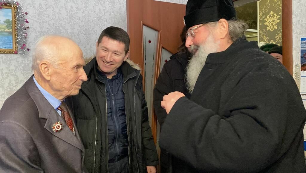 О себе ветеран рассказал, что он 1925 года рождения, ему 96 лет. Владыка поинтересовался у Павла Корчагина, пригласит ли он его на юбилей, на что участник войны ответил, что «если даст Бог» и сам он будет очень стараться.