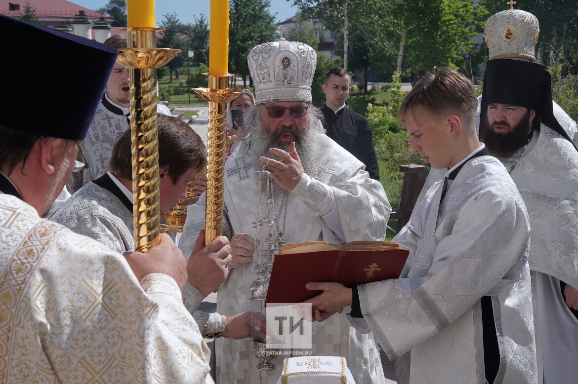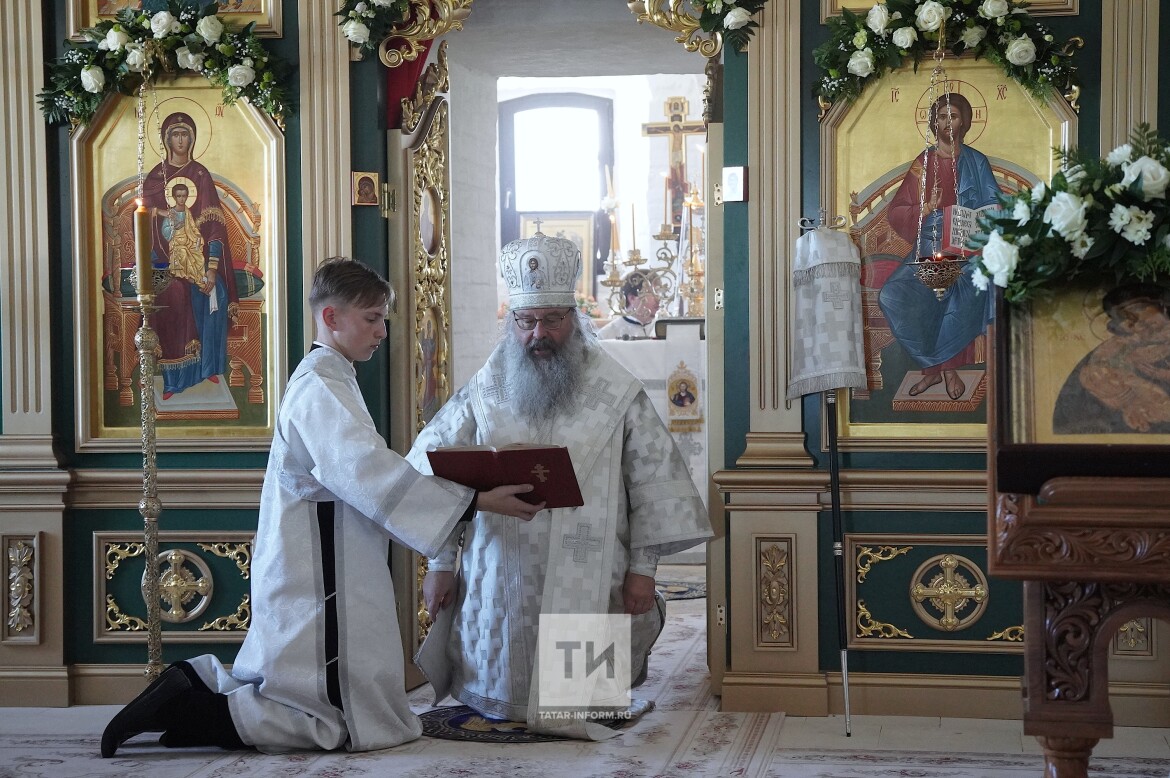 Правящему архиерею сослужили митрополит на покое Анастасий (до 2015 года — владыка Казанский и Татарстанский, до 2019-го — Симбирский и Новоспасский), который начал реставрацию Никольской церкви, и епископ Альметьевский и Бугульминский Мефодий, который ранее был насельником Свияжского Богородице-Успенского мужского монастыря.