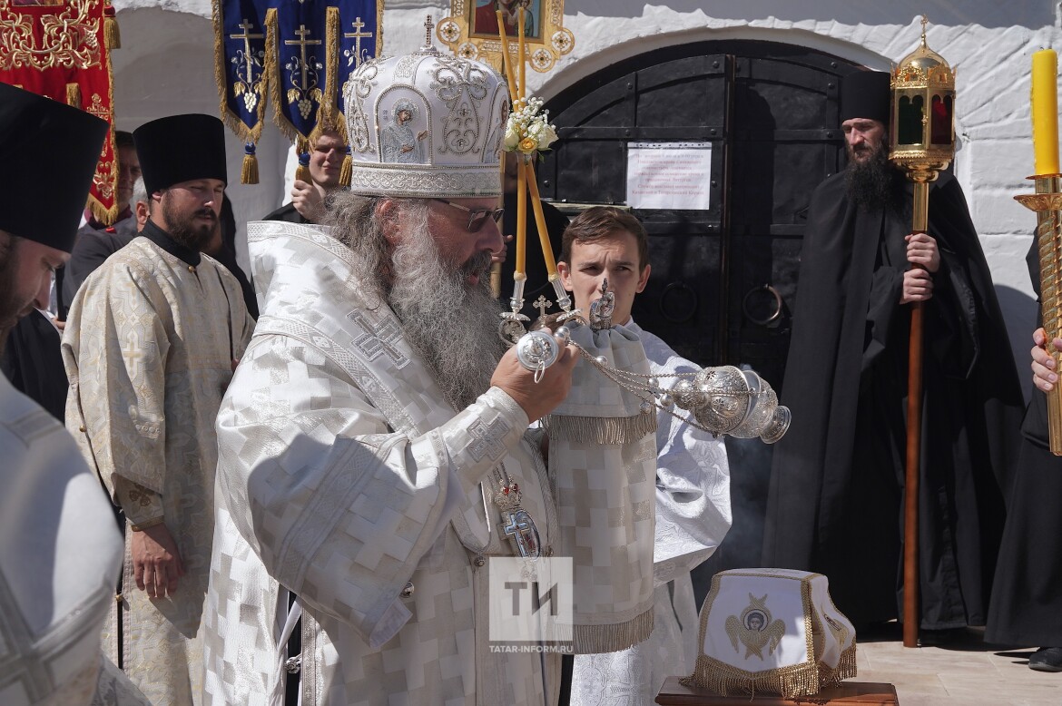 При этом митрополит заметил, что сегодня также было совершено третье по счету перенесение мощей святителя Германа (святой Герман, второй архиепископ Казанский и Свияжский, в 1555–1564 годах был игуменом Свияжского Богородице-Успенского мужского монастыря — прим. Т-и).