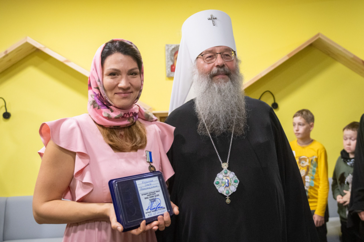 Затем он поблагодарил тех, благодаря кому в Центре прошли ремонтные и благоустроительные работы. Особую признательность владыка выразил руководителю Центра Ольге Копыловой, который инициировала работу над проектом и курировала ремонтные работы, а также занималась организацией учебного процесса. В благодарность за труды митрополит удостоил Ольгу Копылову медали Казанской иконы Божией Матери III степени.