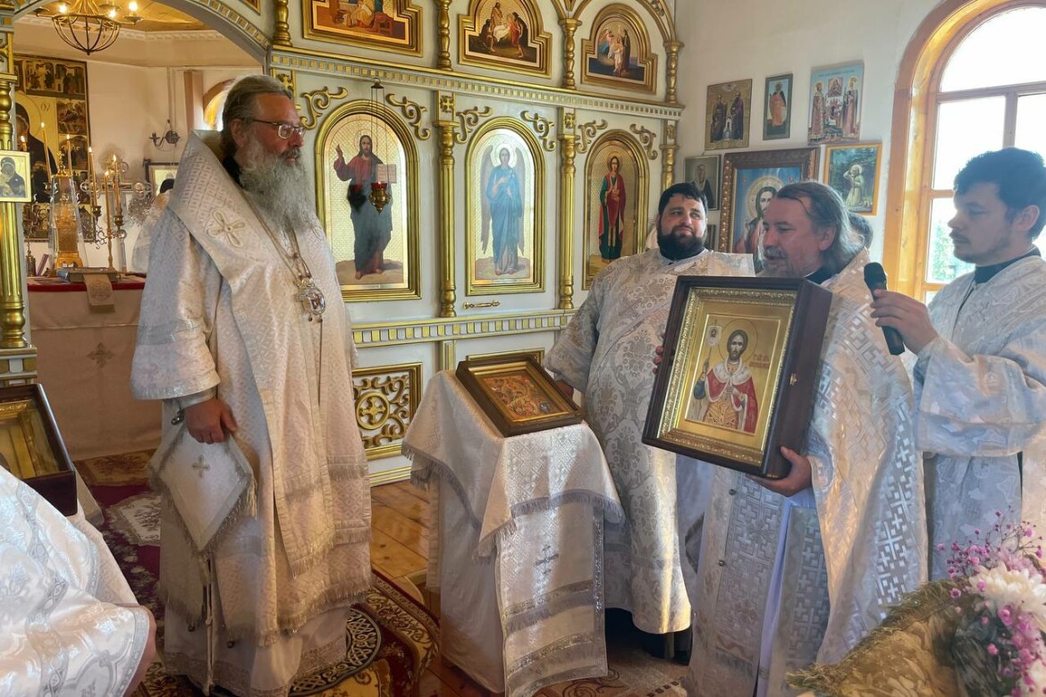 Затем митрополит вручил церковные награды мирянам, особо старавшимся при возведении и благоустройстве святыни.