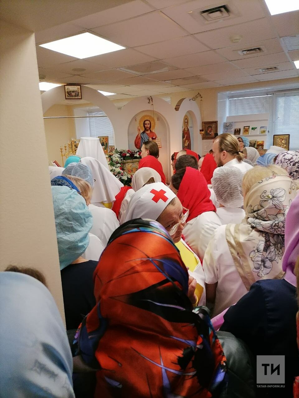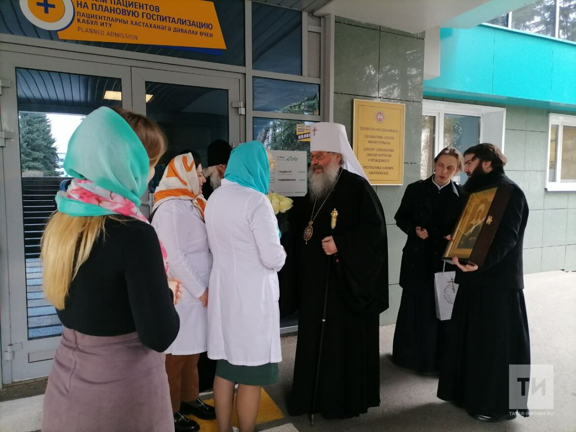 Сегодня в Светлую седмицу Митрополит Казанский и Татарстанский Кирилл совершил молебен в больничном храме РКБ Татарстана. На службу он привез икону с частицей мощей блаженной Матроны Московской.