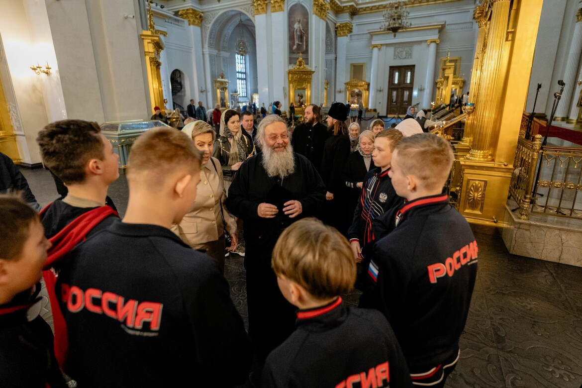 В главном храме Татарстана юных хоккеистов из ЛНР поприветствовал митрополит Казанский и Татарстанский Кирилл. Владыка помолился с ребятами у чтимого списка Казанской иконы Царицы Небесной, а затем пригласил их на чаепитие.