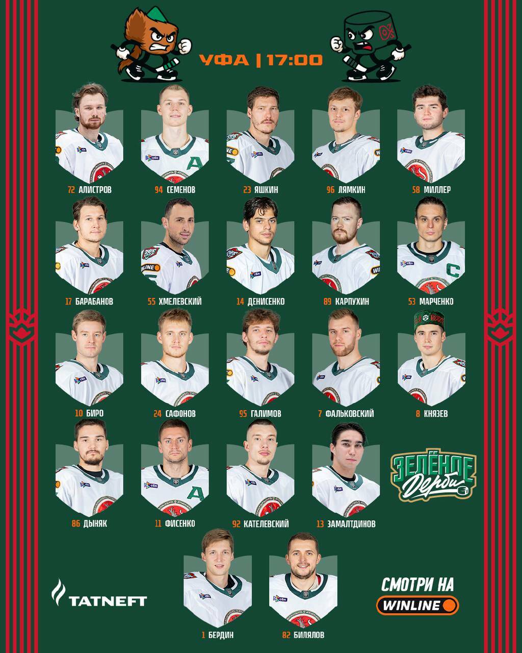 «Ак Барс» в своих социальных сетях опубликовал состав на предстоящий матч регулярного чемпионата КХЛ с уфимским «Салаватом Юлаевым».