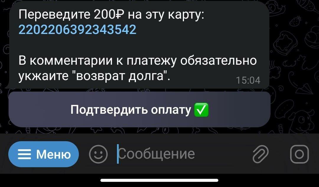 Особую обеспокоенность вызывает тот факт, что организаторы этих каналов требуют денежное вознаграждение за удаление компрометирующих материалов. Суммы варьируются от 200 до 350 рублей, которые необходимо перевести на карты Сбербанка с пометкой «возврат долга» в комментарии к платежу.