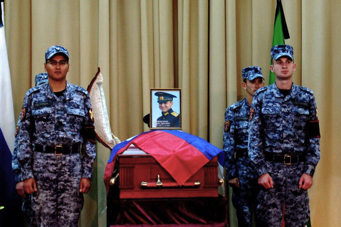 С 27-летним командиром штурмовой эскадрильи Вооруженных Сил России Тимуром Хисматуллиным прощались в Молодежном центре Альметьевска.