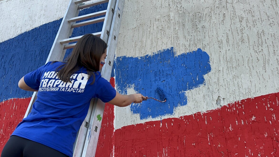 Кроме того, молодогвардейцы нарисовали на стене одного из зданий Лисичанска мурал, изображающий флаги Татарстана и России.