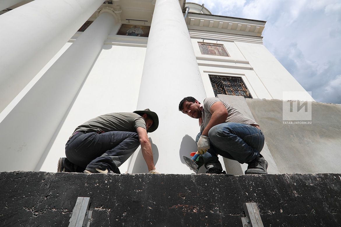 Строители монтируют три входные лестницы (западную, северную и южную) из цельных гранитных ступеней, облицовывают камнем цоколь и паперти. Параллельно ведутся работы в интерьерах подземного (Пещерного) храма, который планируется полностью сдать до конца этого года. Как ранее в эксклюзивном интервью ИА «Татар-информ» рассказал художник-реставратор I категории Межобластного научно-реставрационного художественного управления (МНРХУ, Москва — прим. Т-и) Валерий Косушкин, руководящий работами по росписи нижнего храма, к осеннему празднованию Казанской иконы Божией Матери, 4 ноября, в одном из помещений здесь откроется музей истории и воссоздания собора.