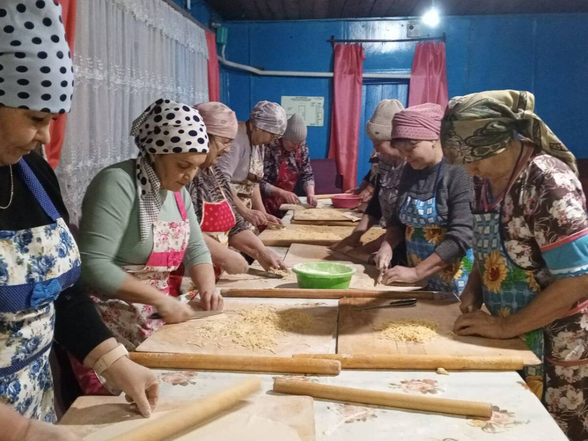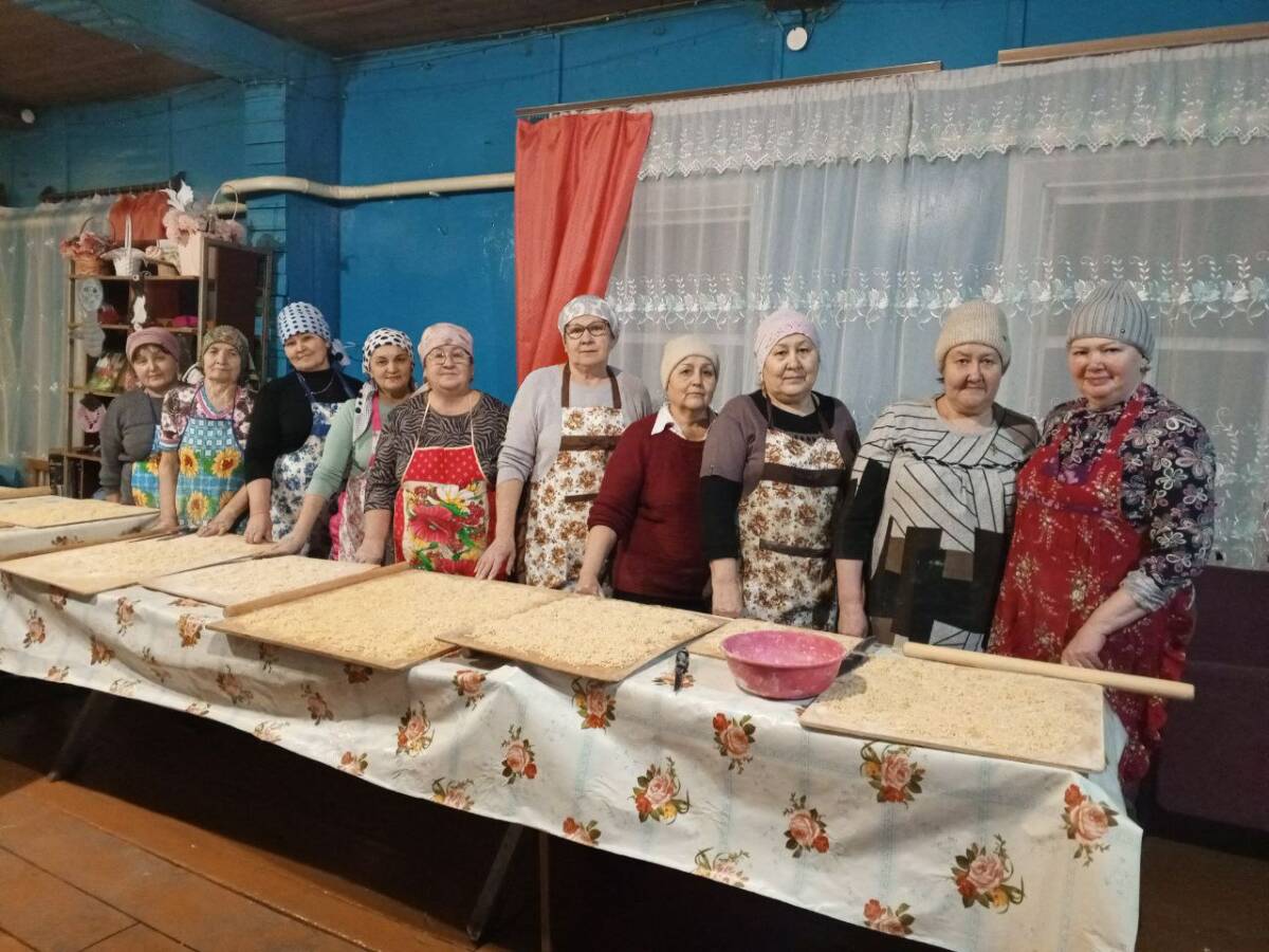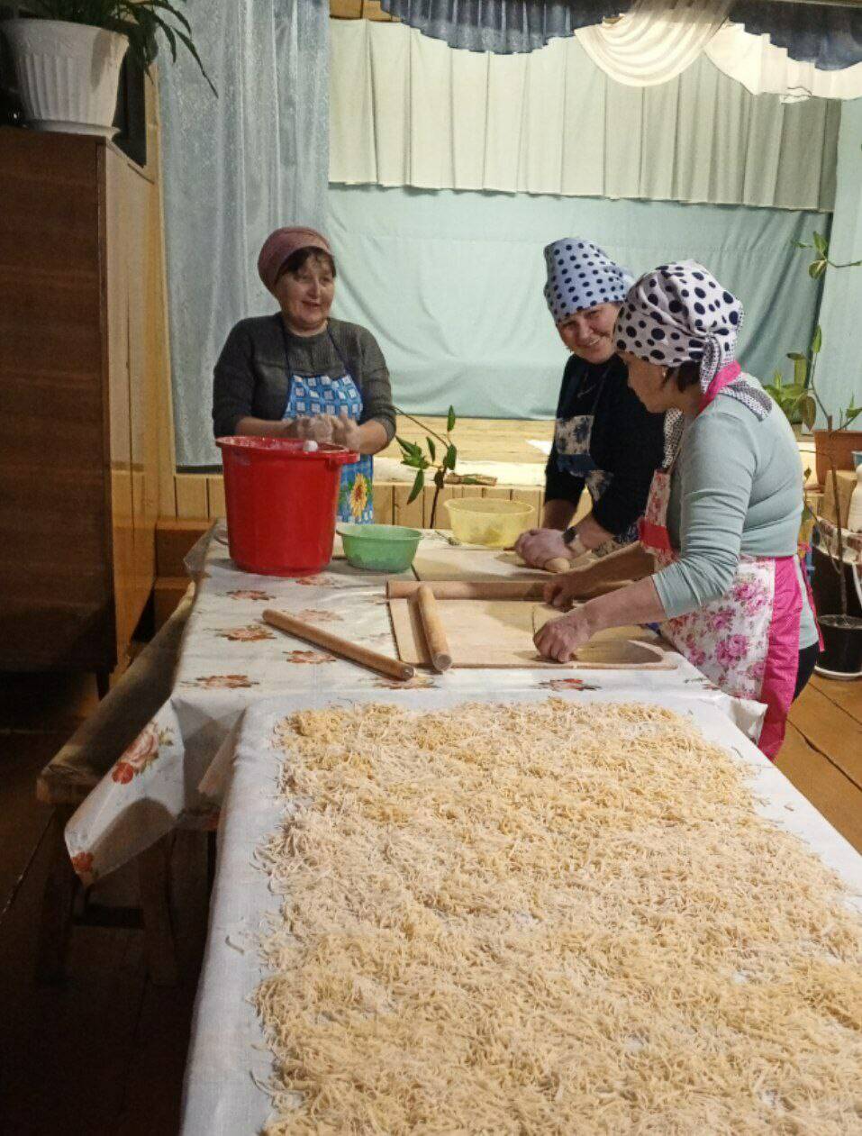 Собравшиеся в клубе женщины приготовили лапшу из 100 яиц. Пожилые жители села, помнящие еще трудные времена Великой Отечественной войны, принесли муку и яйца для общего дела. Они, как и многие другие сельчане, активно помогают не только продуктами, но и деньгами.
