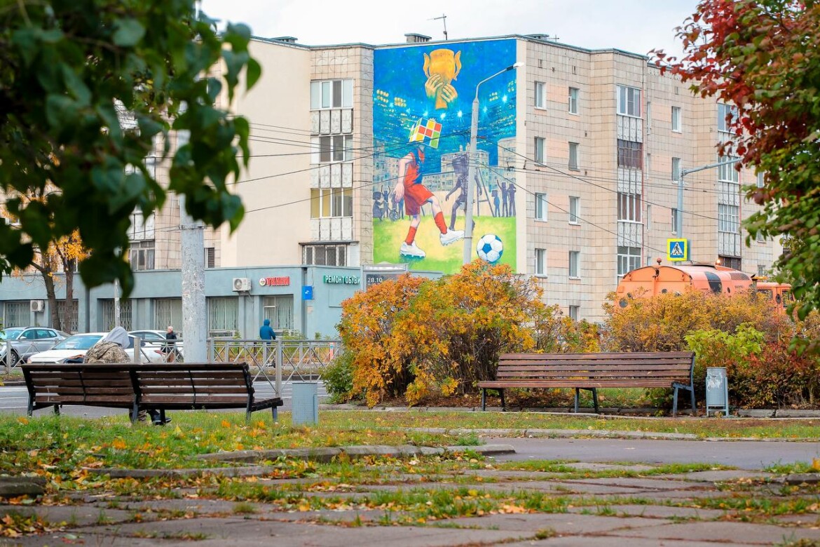 Мурал с кубиками-футболистами появился на одном из домов в Московском районе Казани