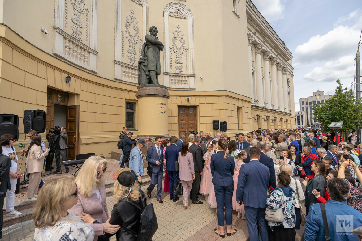 Сегодня, в день 224-летия Александра Пушкина, председатель Госсовета РТ Фарид Мухаметшин и Государственный советник РТ Минтимер Шаймиев возложили цветы к памятнику великому русскому поэту. Церемония прошла у здания Татарского театра оперы и балета им.Джалиля.