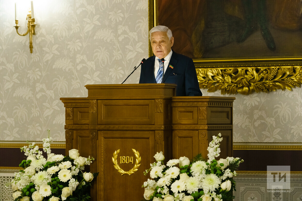 Председатель Госсовета вспомнил, как проводилась работа по разработке Основного закона Татарстана, 30-летие которого отмечается в этом году. По его словам, тогда к этому процессу привлекли, в том числе, представителей научного сообщества. В результате в 1992 году Верховным Советом республики был принят политико-правовой документ, который «в полной мере отвечал вызовам наступившей эпохи в новой истории России и воплотил чаяния многонационального народа».