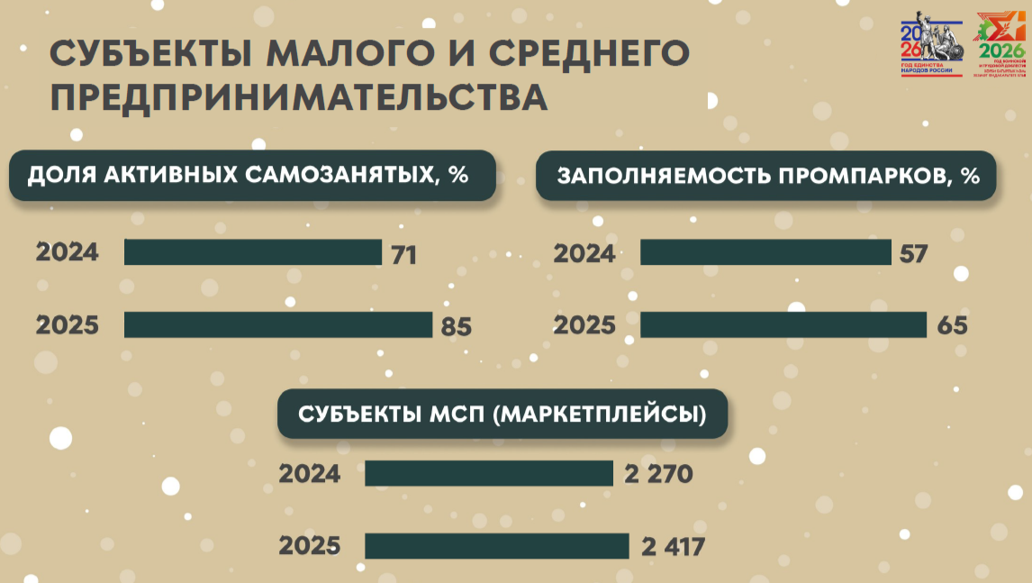 Активно развивается институт самозанятости: 85% зарегистрированных продолжают вести деятельность, что выше среднего значения по республике.