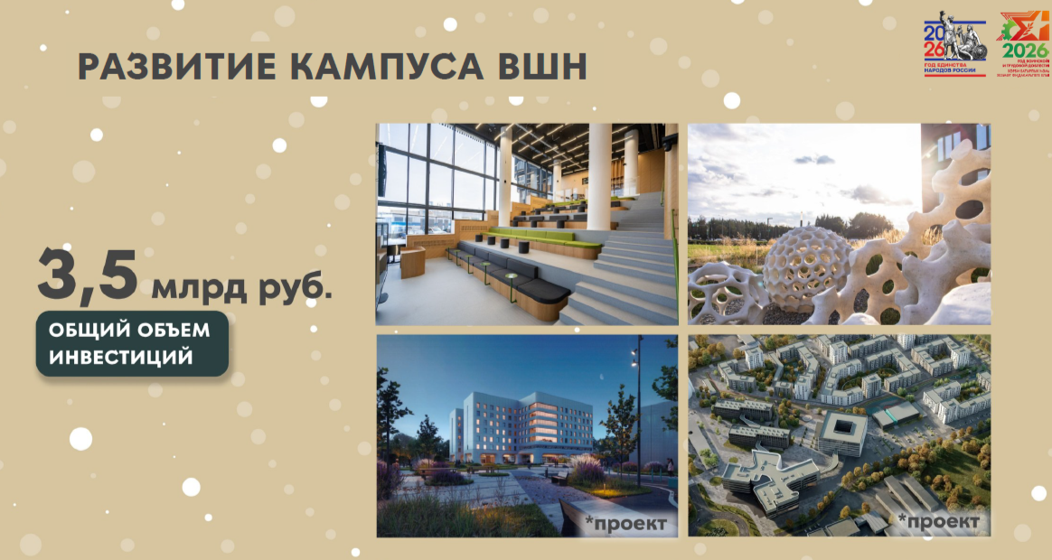 В кампусе «Высшей школы нефти» продолжается расширение научно-исследовательского и учебного центра. Кампус пополняется новыми объектами. Общий объем инвестиций – 3,5 млрд рублей.