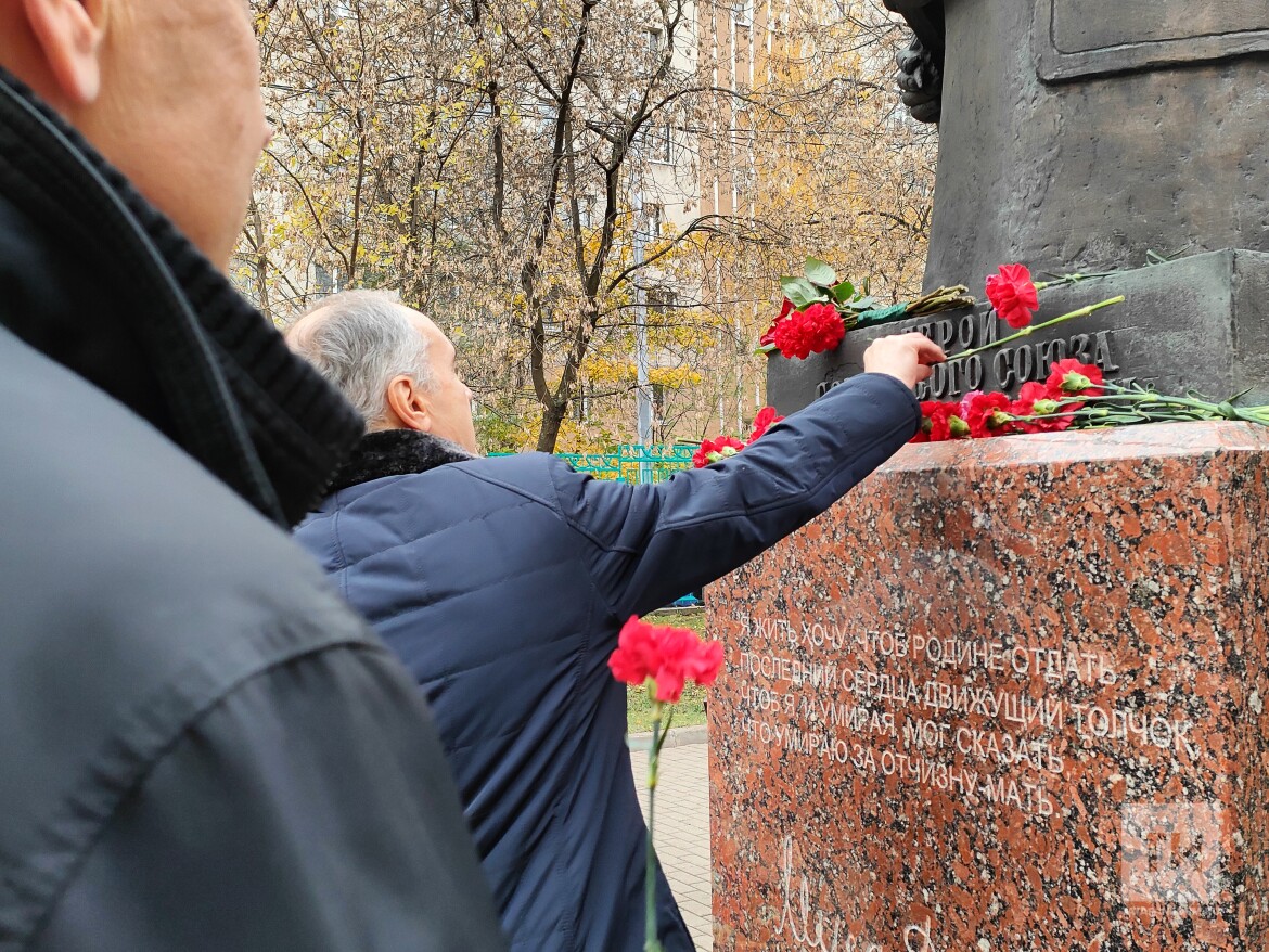 После осмотра школы гости и коллектив школы торжественно возложили цветы к монументу Мусы Джалиля, установленному во дворе.