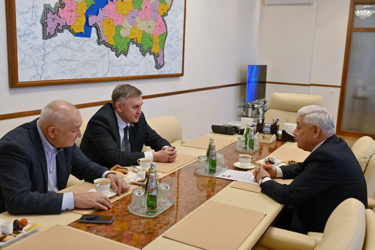 С председателем Законодательного Собрания Кировской области Романом Бересневым встретился сегодня председатель Госсовета РТ Фарид Мухаметшин. Встреча, в которой поучаствовал и первый зампредседателя Комитета Госдумы по делам национальностей Ильдар Гильмутдинов, прошла в парламенте республики.