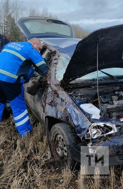 Как стало известно «Татар-информу» со слов очевидцев, водитель универсала «Лада» не удержал авто на скользкой дороге и вылетел в кювет, где машина перевернулась.