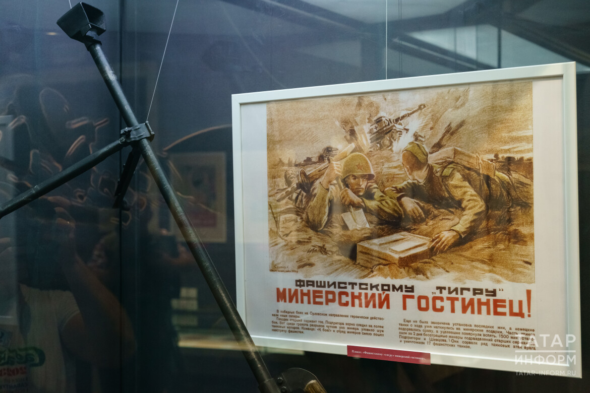 Экспозиция поделена на несколько исторических тем: «Этапы Курской битвы», «Татарстанцы в Курской битве» и «Они сокрушили гитлеровский „зверинец“».