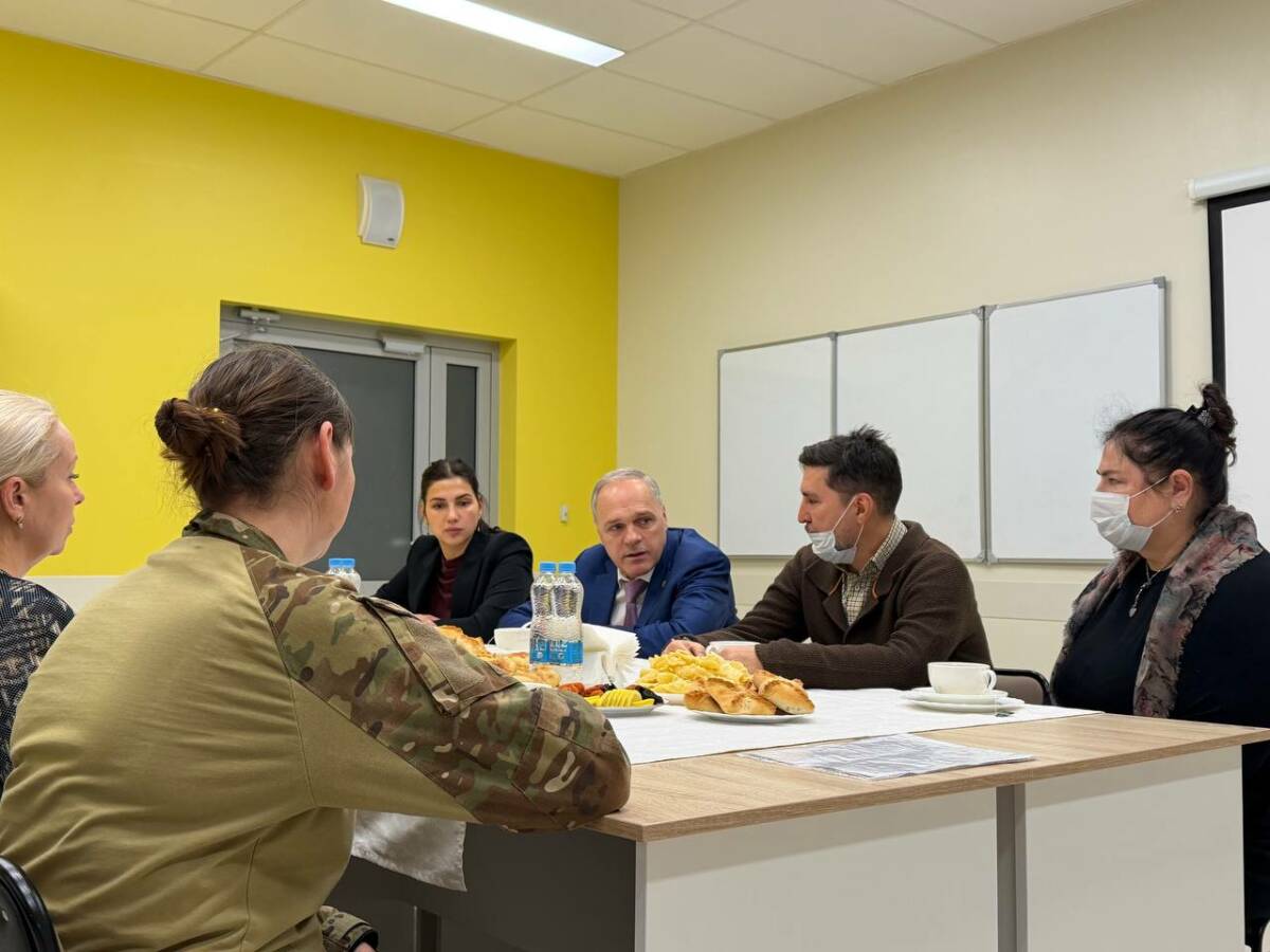 Перед Новым годом особое внимание в клинике уделили сотрудникам, которые находятся в зоне проведения специальной военной операции. До концерта главный врач Артур Делян встретился с теми, кто защищает Родину, и с их семьями. Они обсудили насущные темы и волнующие вопросы, после чего главврач вручил подарки.
