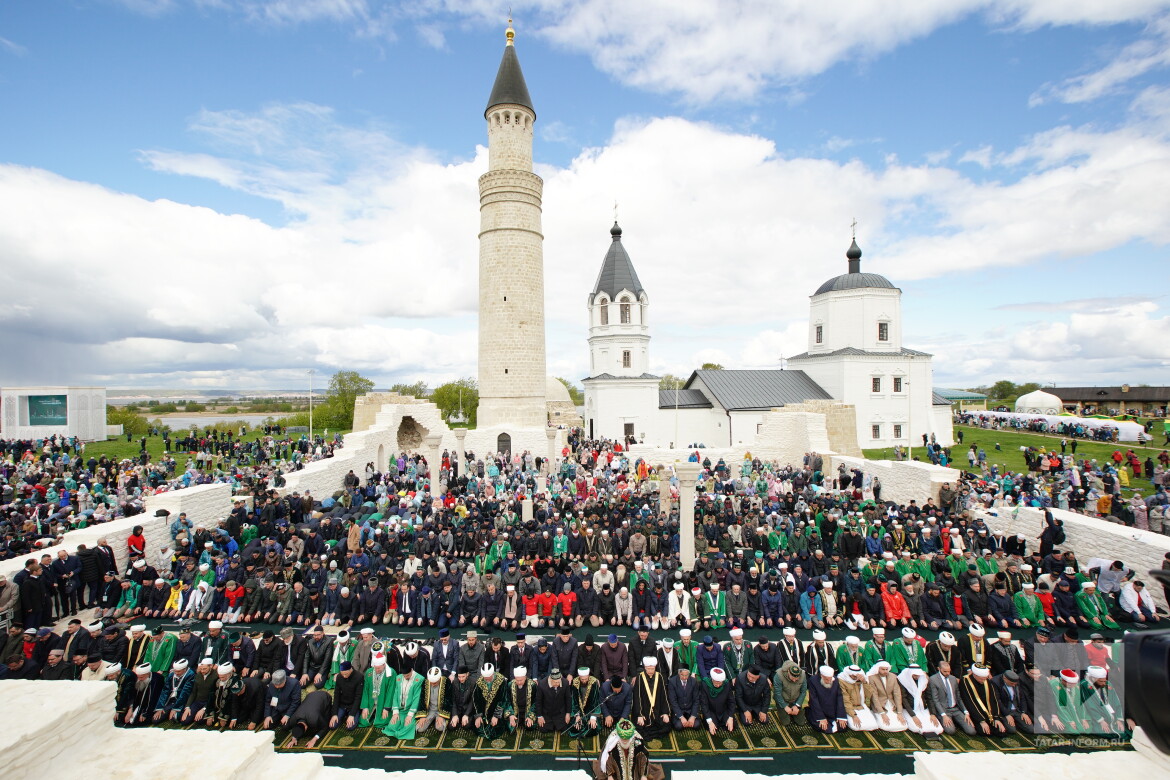 Финалом стал коллективный намаз на месте Болгарской соборной мечети. Периметр достаточно быстро заполнился, и волонтеры были вынуждены на каком-то моменте прекратить пускать молящихся. Скоро через коридор, созданный охраной, прошли все муфтии и Президент Татарстана. Молитву возглавил Талгат Таджуддин.