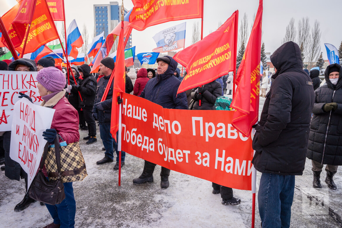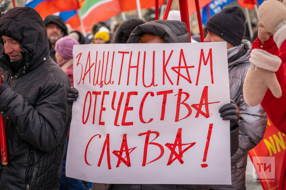 Поддержка бойцов, исполняющих свой долг в зоне спецоперации, стала главной темой митинга-концерта, приуроченного ко Дню защитника Отечества, который прошел сегодня в казанском парке Победы. Слова поддержки исходили не только от официальных лиц, но и от жен военнослужащих. Подробнее – в материале «Татар-информа».