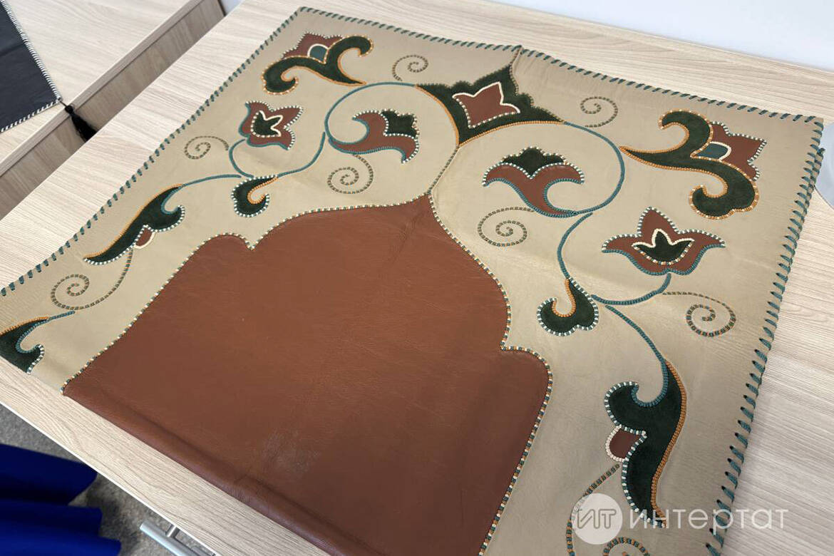 Как мы уже отметили, по своей первой специальности Рамзия Фаттахова – мастер по коже, и она признается, что изделия из этого материала у нее получаются быстрее. В мастерской можно увидеть намазлык – ее дипломную работу, а также изготовленные ею подушки, коврики на пол и на стулья…