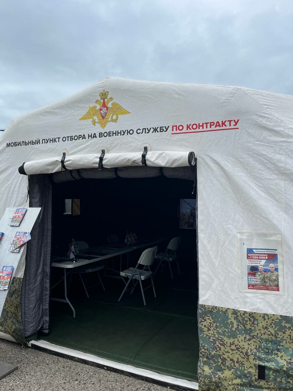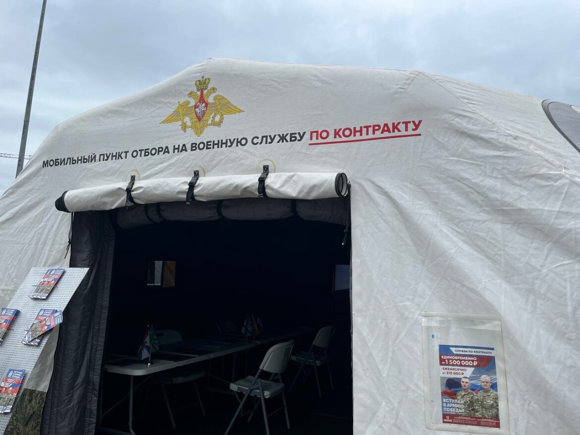 В Набережных Челнах развернули мобильный пункт отбора на военную службу по контракту. Расположился он возле одного из торговых центров Автограда. Желающим разъясняли все нюансы службы, сообщили и о новой единовременной выплате. Так, в Татарстане до конца июля она составляет до 1,5 млн рублей, но только если документы подписаны в республике.