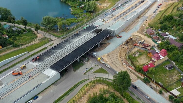 Здесь строятся четырехполосная дорога, путепровод над Фермским шоссе и надземный пешеходный переход.