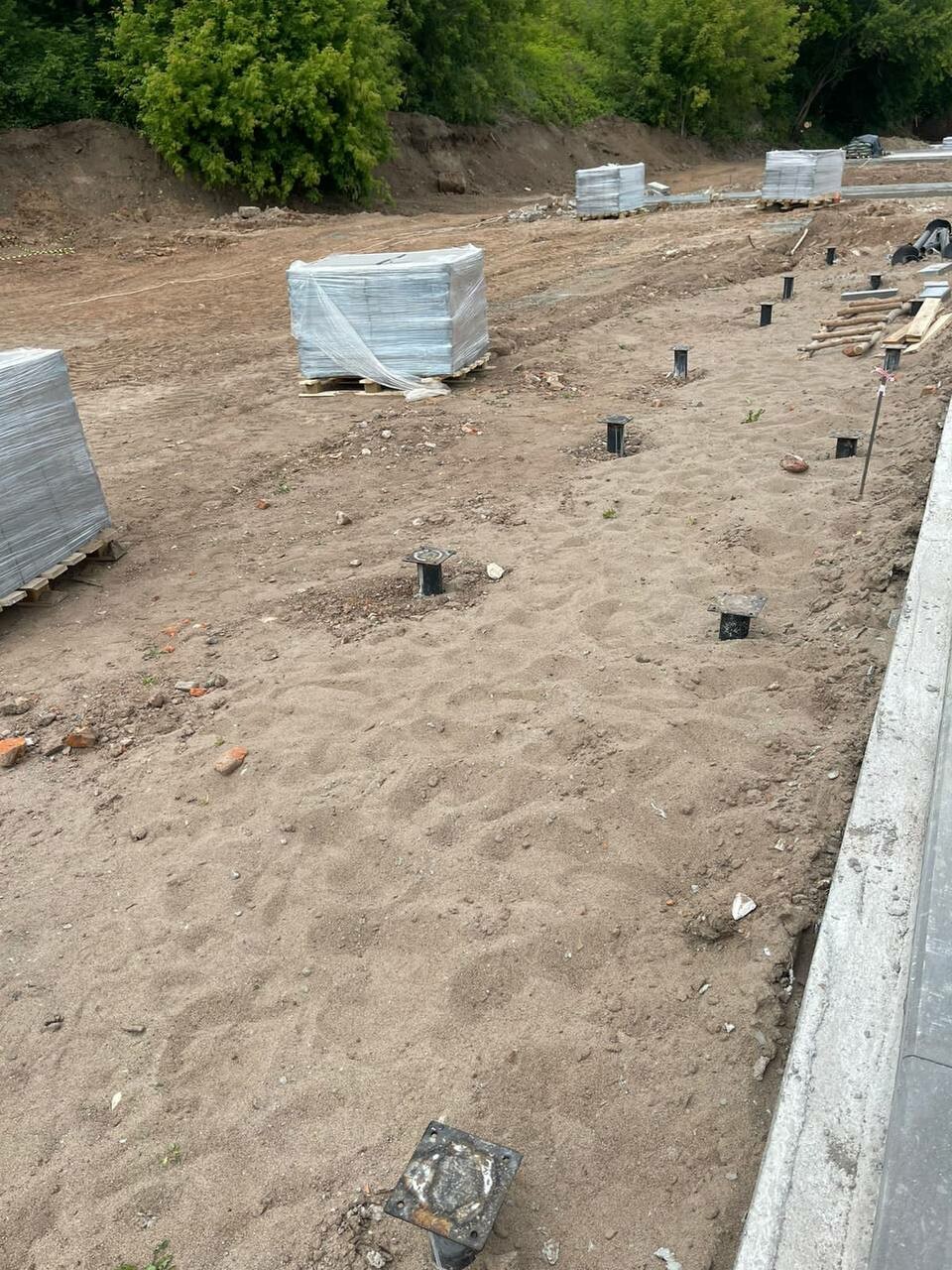 Также проведена заливка бетонного основания для укладки тротуарной плитки, установлен бордюрный камень, уложена тротуарная плитка. Данные виды работ выполнены на 100%.