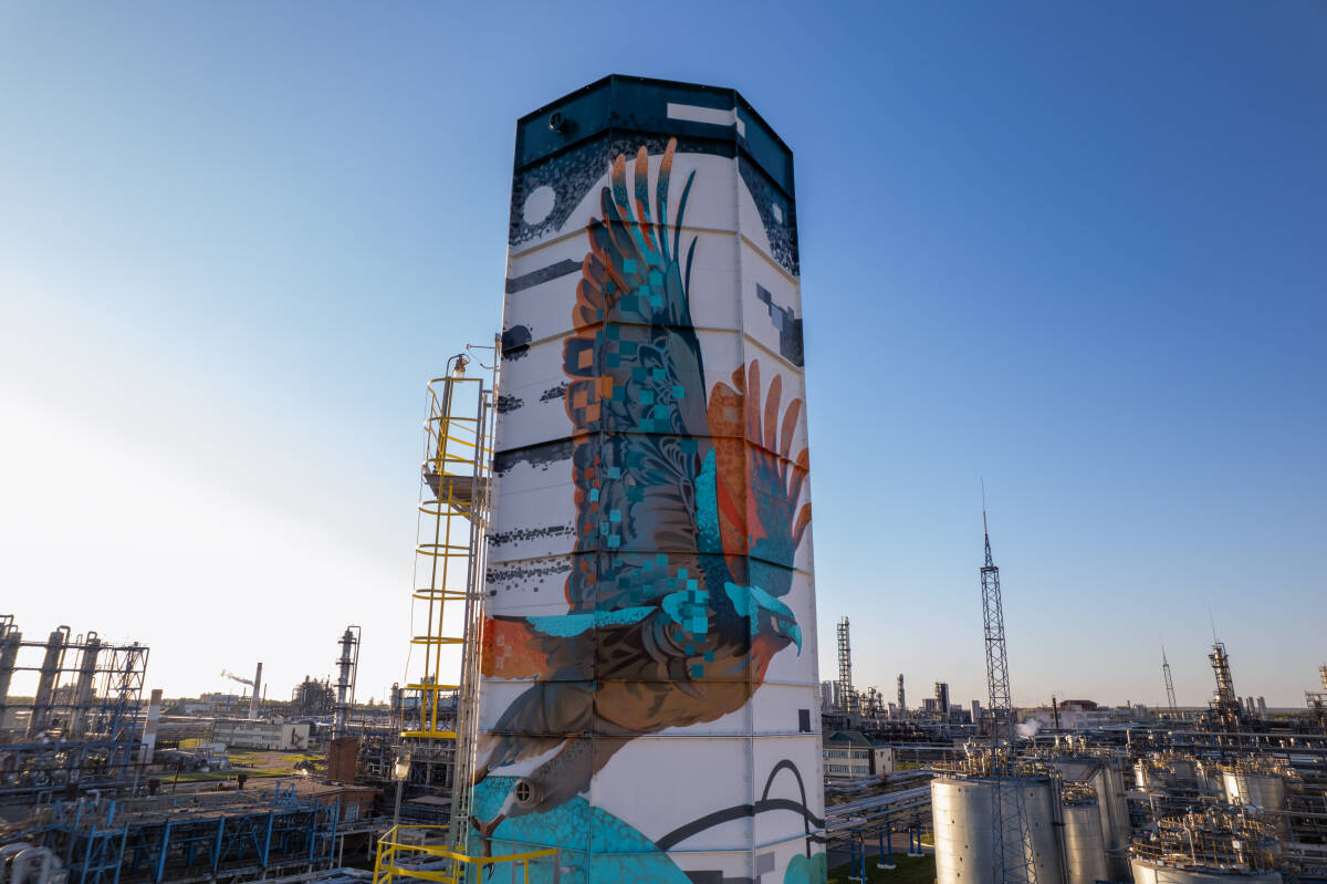 Как сообщает пресс-служба предприятия, новый арт-объект подчеркнул фокус предприятия на экологичность: редкая птица разместилась на бездымном факеле закрытого типа – наиболее экологичном из действующих факельных систем.