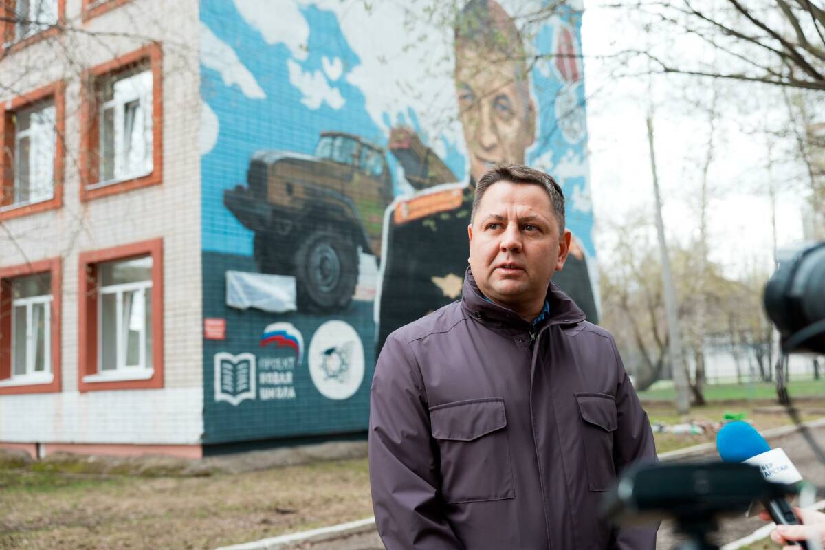 В рамках партийного проекта «Новая школа» в здании гимназии ранее провели капитальный ремонт. После этого было принято решение увековечить память выпускника и открыть «Парту Героя». Позднее участники проекта вместе с семьей офицера обсудили создание мурала на фасаде школы.