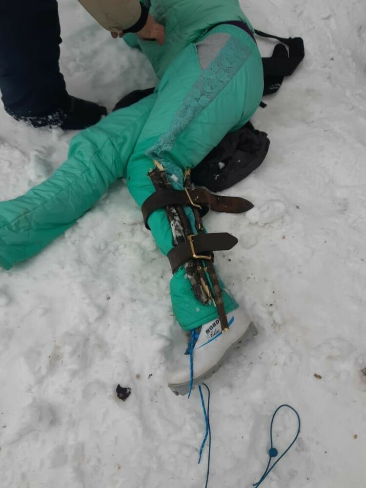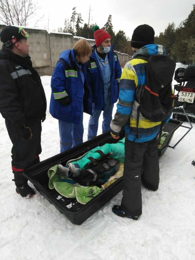 Спасатели прибыли на место на снегоходе. Еще до их появления очевидцы наложили на ногу женщины шину из ремней и палок. Сотрудники МЧС уложили женщину на прицеп снегохода, укрыли куртками и отвезли до автомобиля скорой помощи.