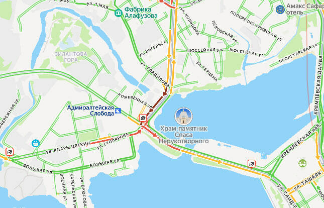 Серьезная пробка возникла из-за ДТП на Кировской дамбе в сторону центра Казани. Об этом свидетельствуют данные сервиса «Яндекс.Карты».