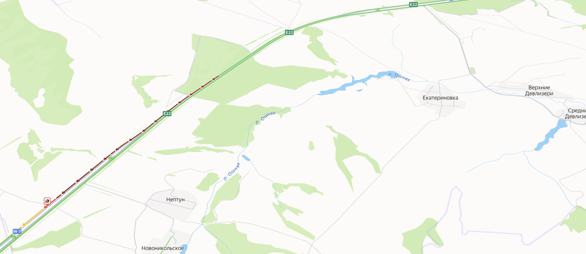 На участке трассы М7 около деревни Новоникольское под Казанью произошло ДТП с фурой. В результате на данном участке дороги образовалась трехкилометровая пробка. Об этом следует из данных сервиса «Яндекс.Карты».