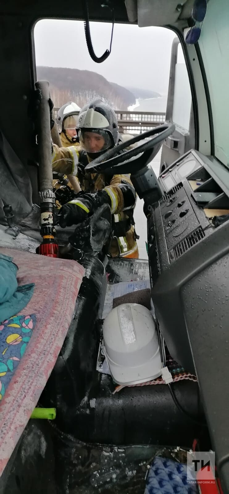 На мосту через Волгу под Казанью на ходу загорелась фура