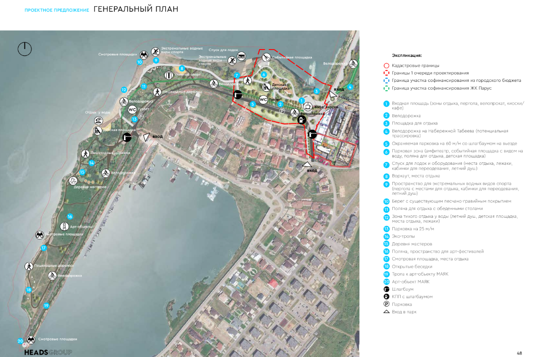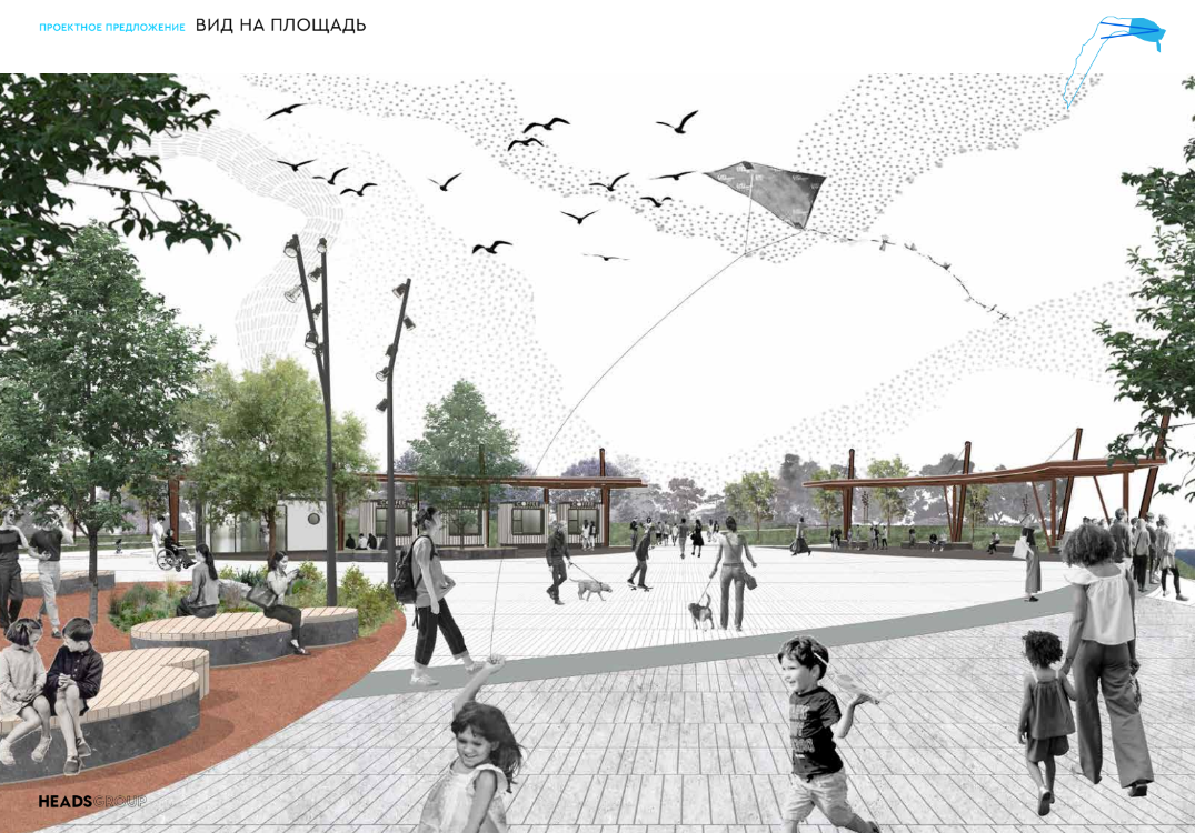 Разработчиком выступило архитектурное бюро «Хэдс групп». По их мнению, территория должна стать продолжением существующей прибрежной рекреационной зоны, формируемой набережной Табеева и парком Прибрежный. Развитие площадей в южной части набережной Табеева позволит создать единую связную систему общественных пространств вдоль берега Камы в Центральном районе.