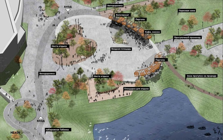 Также архитекторы отметили, что территория проектирования позволяет осуществлять контакт с водой напрямую на всем своем протяжении.