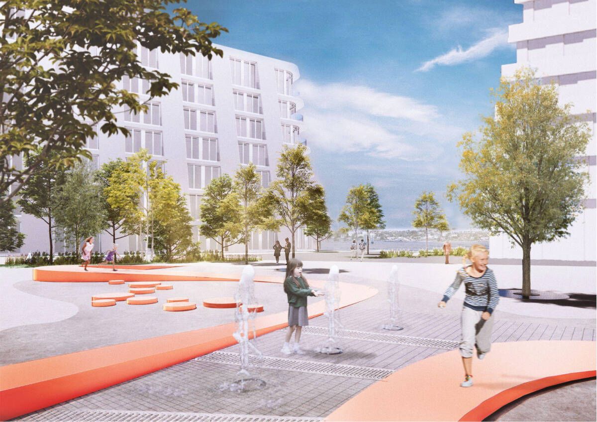 Третьим элементом «Садов портовой бухты» станет центральная улица, где разместятся коммерческие предприятия, будут проводиться временные выставки, галереи и арт-инсталляции. Выходом к набережной станут зеленые бульвары, которые сделают пешеходными. Также планируется создание приватных дворов, пользоваться которыми смогут только местные жители.