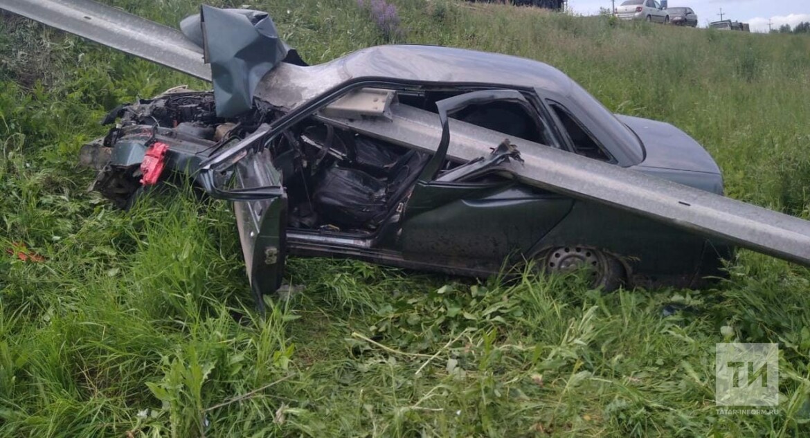 На новых фото ДТП из Алькеевского района РТ видно, что одно из авто «надето» на отбойник
