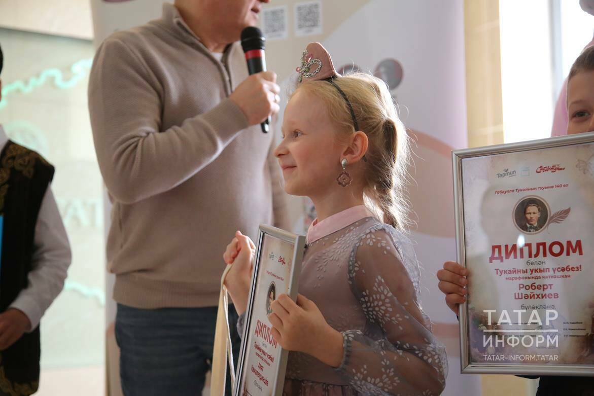 Хаят Камалетдинова, дочь фотографа информационного агентства «Татар-информ» Салавата Камалетдинова, прочитала стихотворение «Әйт әле, күбәләк». Латыпа Фархушина, Роберт Шайхиев, Хаят Зиннатуллина и Алия Гимадиева также получили дипломы за участие в марафоне. Каждый из детей вернулся с подарками.
