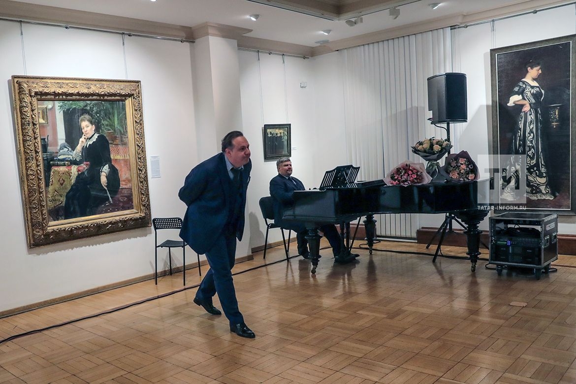 Перед осмотром выставки для публики спели вокалисты арт-проекта «ТенорА XXI века». Начать свое выступление певцы решили со знаменитого итальянского шлягера XX века «Памяти Карузо».