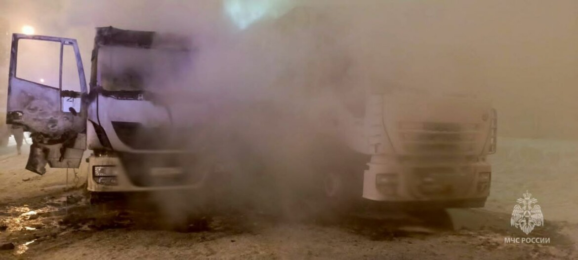 Огнеборцы оперативно потушили два тягача Iveco. Водитель одного из большегрузов, пытаясь потушить пожар, получил ожоги рук и лица и был госпитализирован в РКБ.