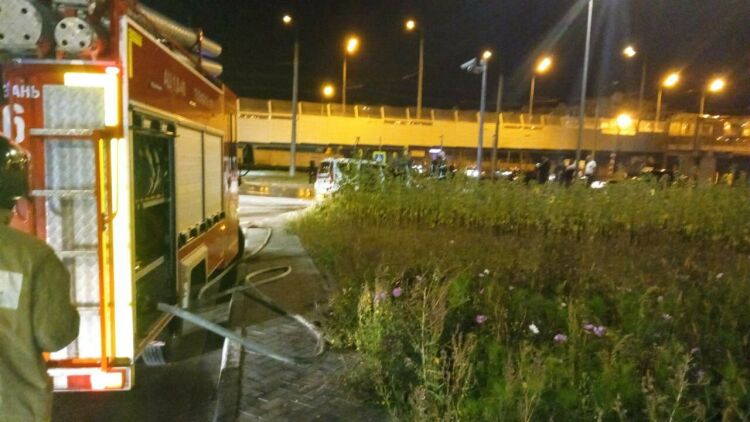 На парковку к «Меге» в Казани вызвали пожарных тушить горящую легковушку