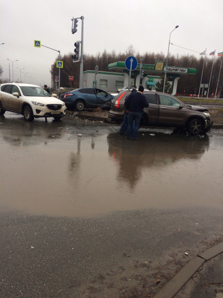 (Казань, 20 ноября, «Татар-информ»). Пользователи соцсетей сфотографировали два столкнувшихся легковых автомобиля на перекрестке улиц Габишева и Кул-Гали.