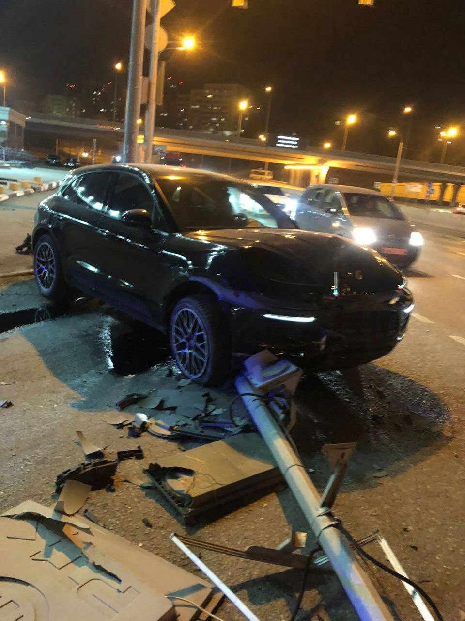 Водитель премиального Porsche без номеров наехал на светофор, после чего скрылся с места ДТП. В результате светофорный объект упал на проезжую часть.