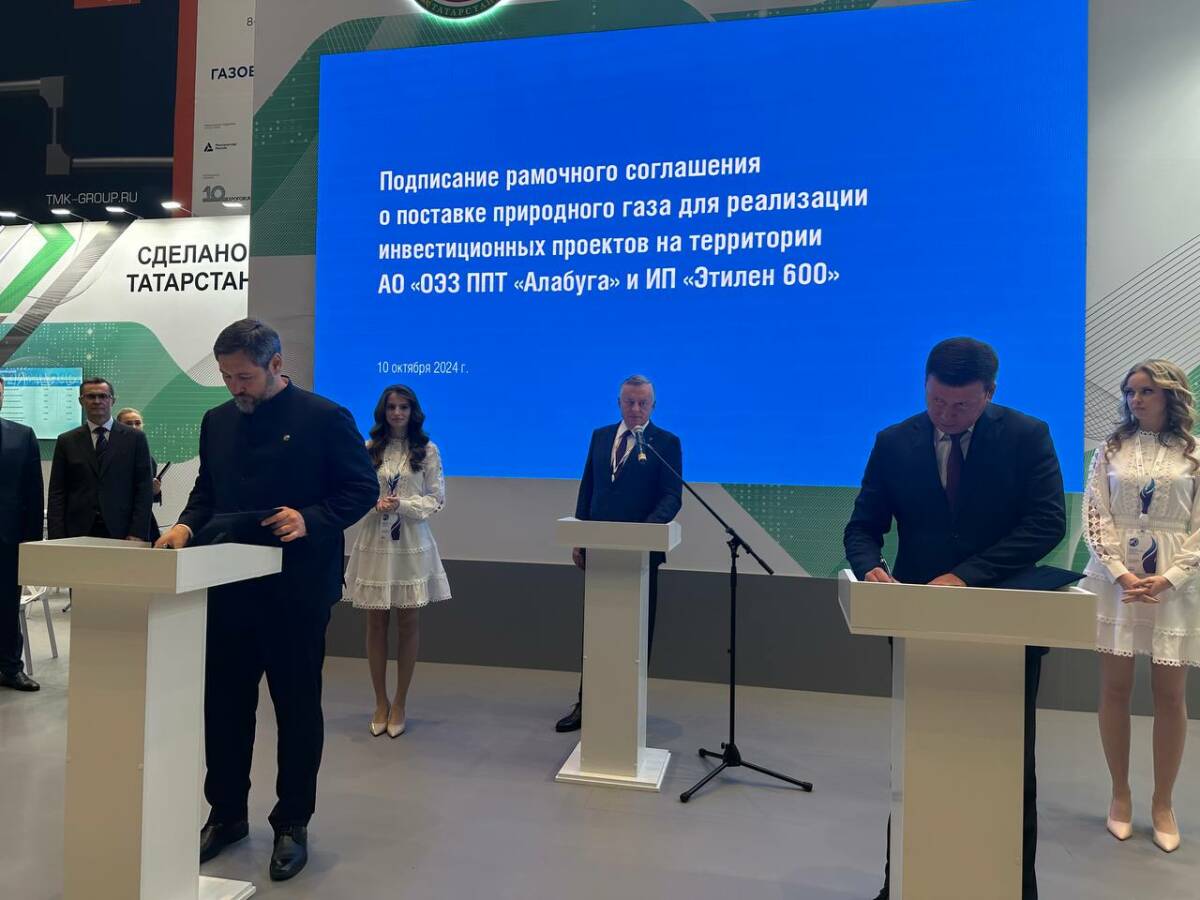 В свою очередь соглашение о поставке природного газа для реализации инвестиционных проектов на территории особой экономической зоны «Алабуга» и «Этилен 600» подписали глава Минпромторга РТ и член совета ОЭЗ Олег Коробченко и руководитель «Газпром межрегионгаз Казань» Айдар Тагиров.