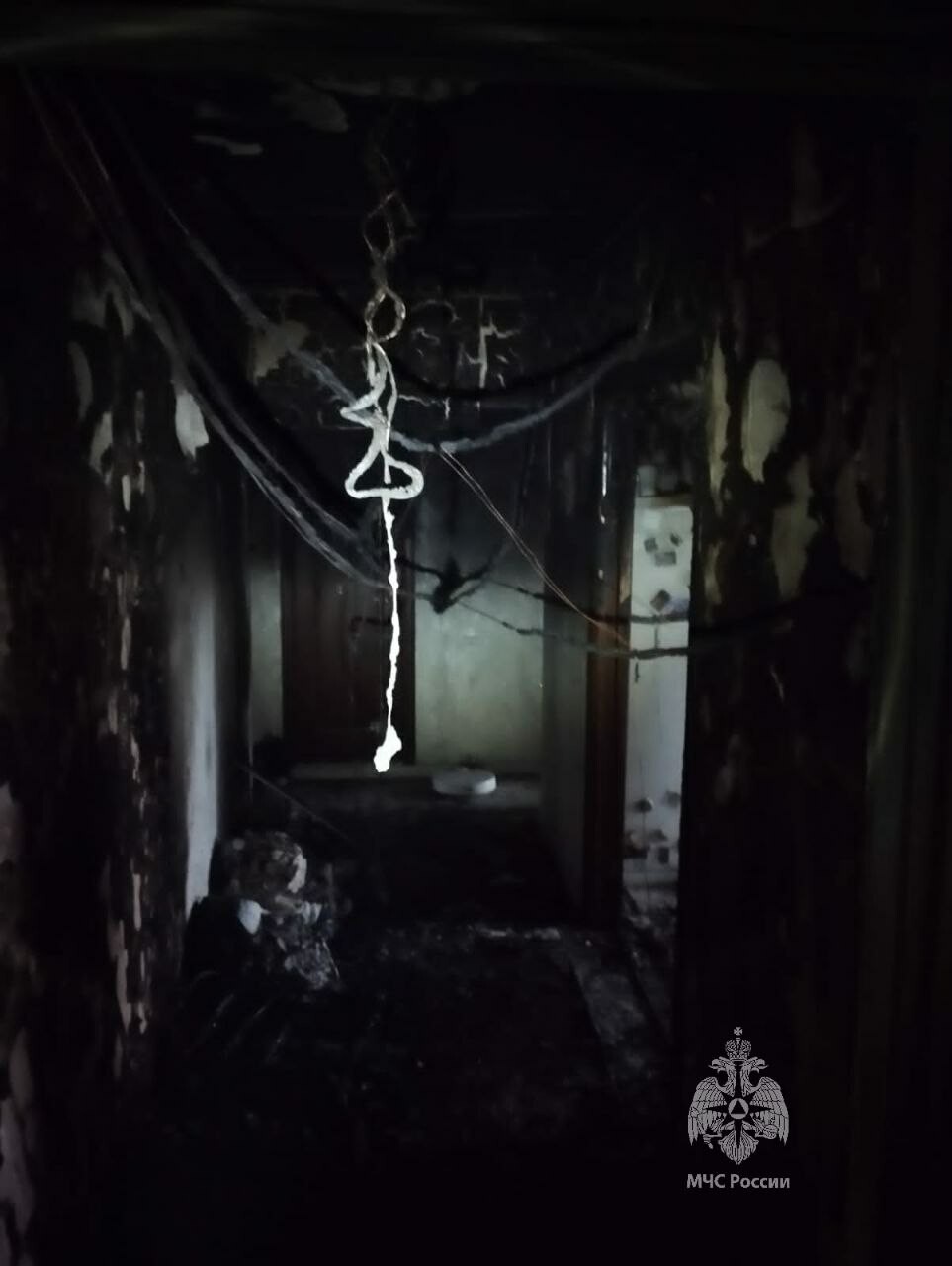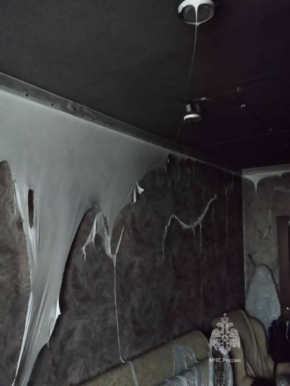 По предварительным данным, в коридоре квартиры на 8-м этаже загорелся подвесной потолок, горящий расплавленный пластик потек на вещи в комнате.