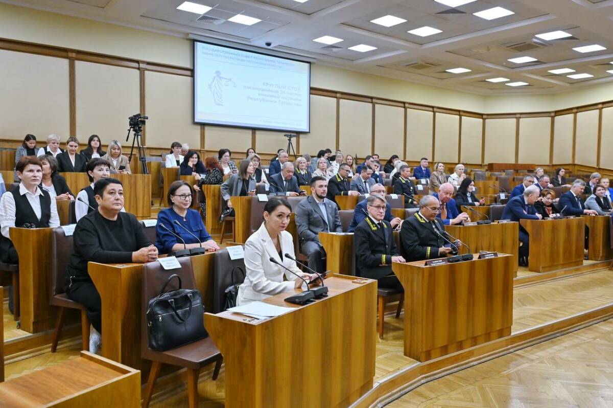«Осуществление правосудия – очень трудная, напряженная, крайне ответственная работа. Она требует глубоких знаний, собранности, компетентности, высокой процессуальной культуры, быть положительным примером в труде, да и просто в жизни – на судей всегда смотрят особо внимательно. Поэтому на ваших плечах лежит большая ответственность. Именно вы, служители Фемиды, стоите на защите прав и свобод человека, именно вас государство наделило особыми полномочиями. От вашей работы, от нравственных установок и понимания значимости своей миссии зависит качество правосудия и авторитет судебной власти в стране», – обратился Председатель Госсовета РТ к собравшимся.
