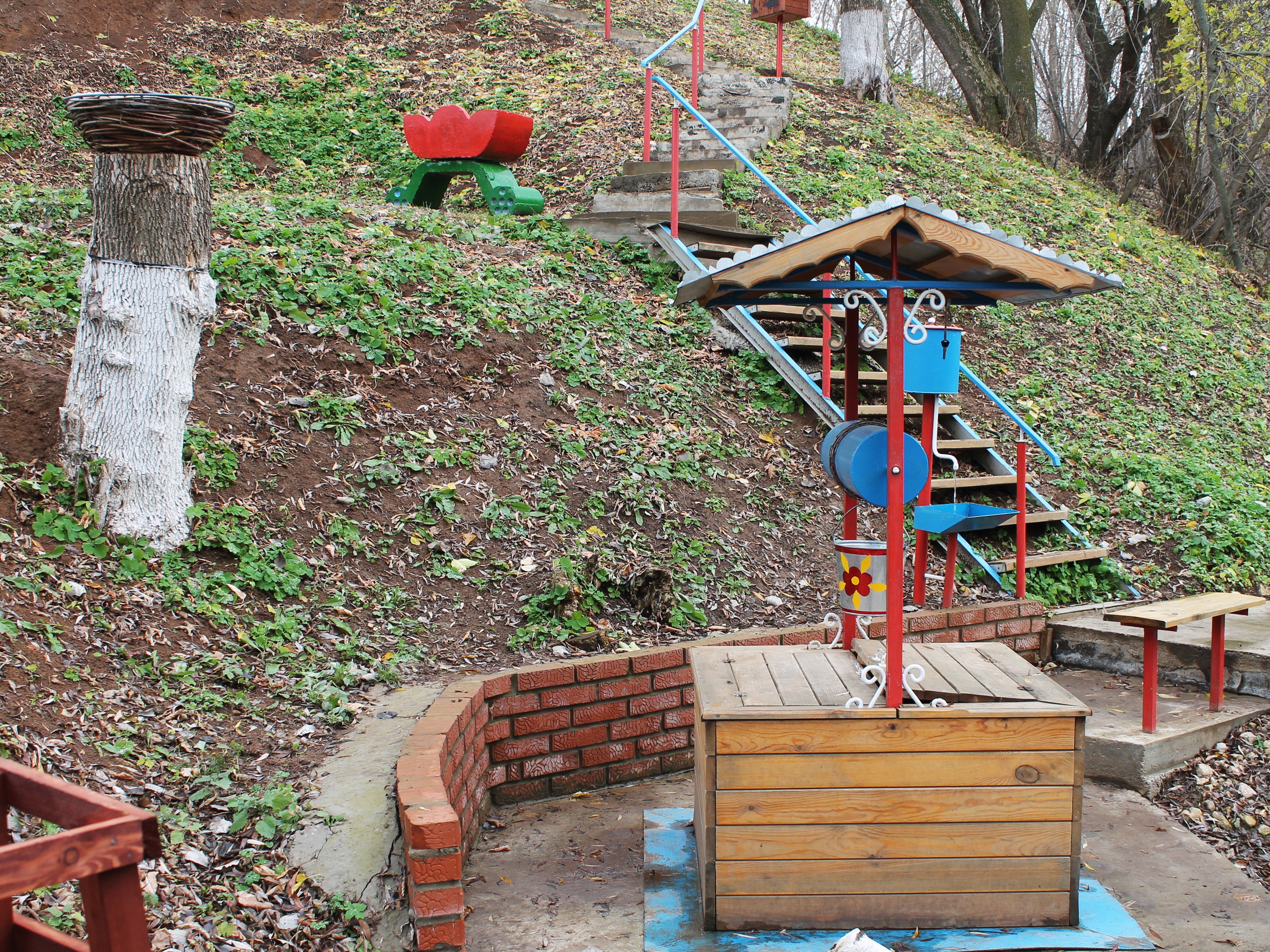 В настоящее время на территории родника оборудованы два «книжных домика», ниже по склону поставят третий – для детей, который оформят в форме сундука.