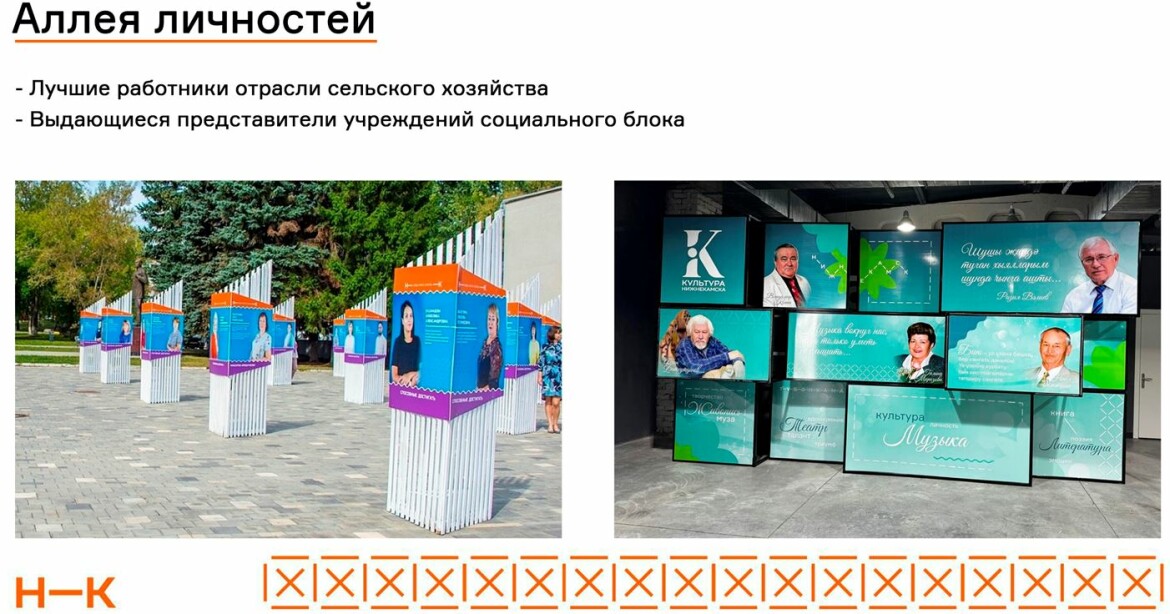 В этом году новинкой Сабантуя станет оформление «Аллеи личностей», на которой будут представлены лучшие работники отрасли. По двум сторонам главной улицы майдана разместятся деревянные трехгранные стойки с постерами. Кроме этого, будут представлены конструкции-кубы с постерами лучших сотрудников от учреждений социального блока.